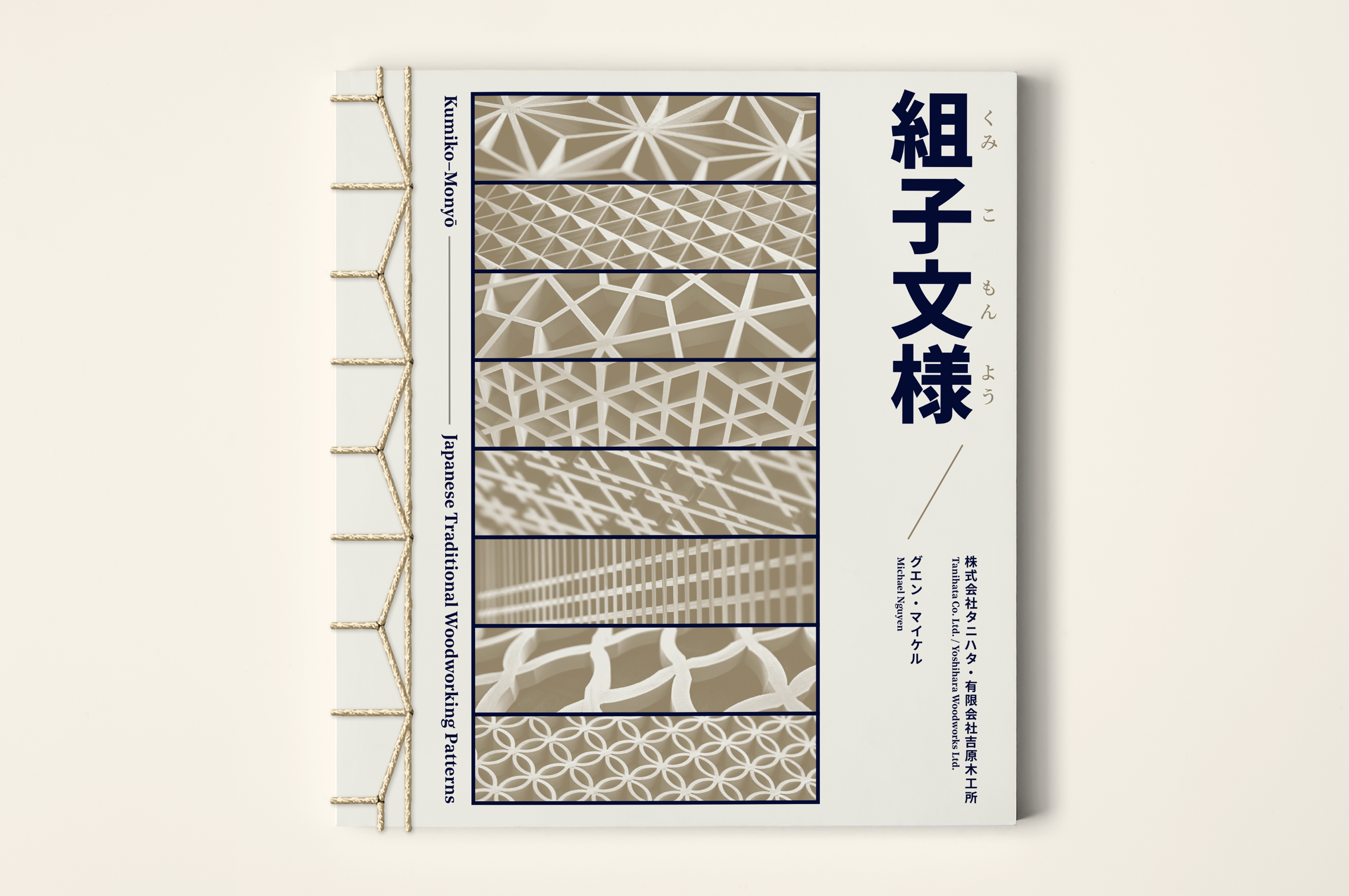As a book project, I also bound it using the traditional Asanoha motif which is introduced as the first Kumiko pattern in the book, which is introduced as the first Kumiko pattern in the book, creating a direct connection between the binding method and the subject matter.