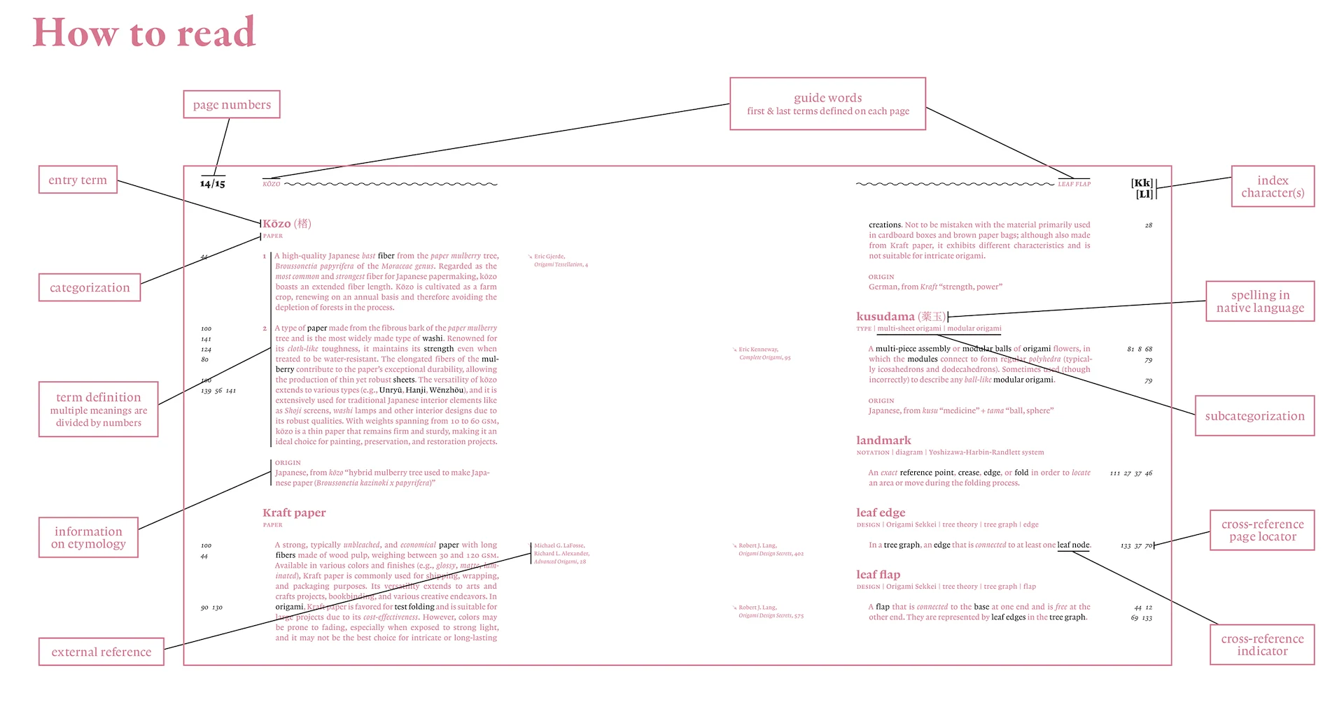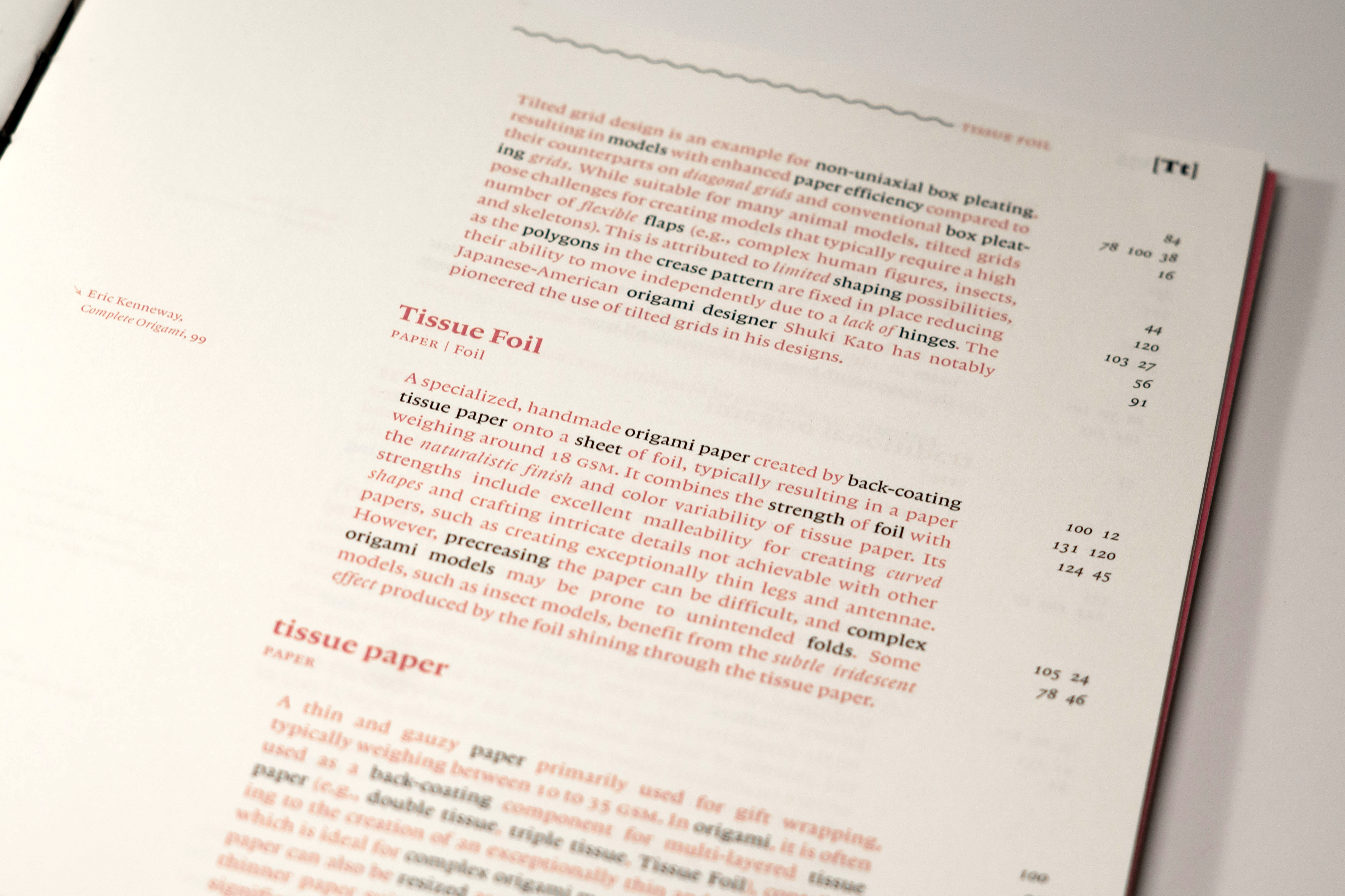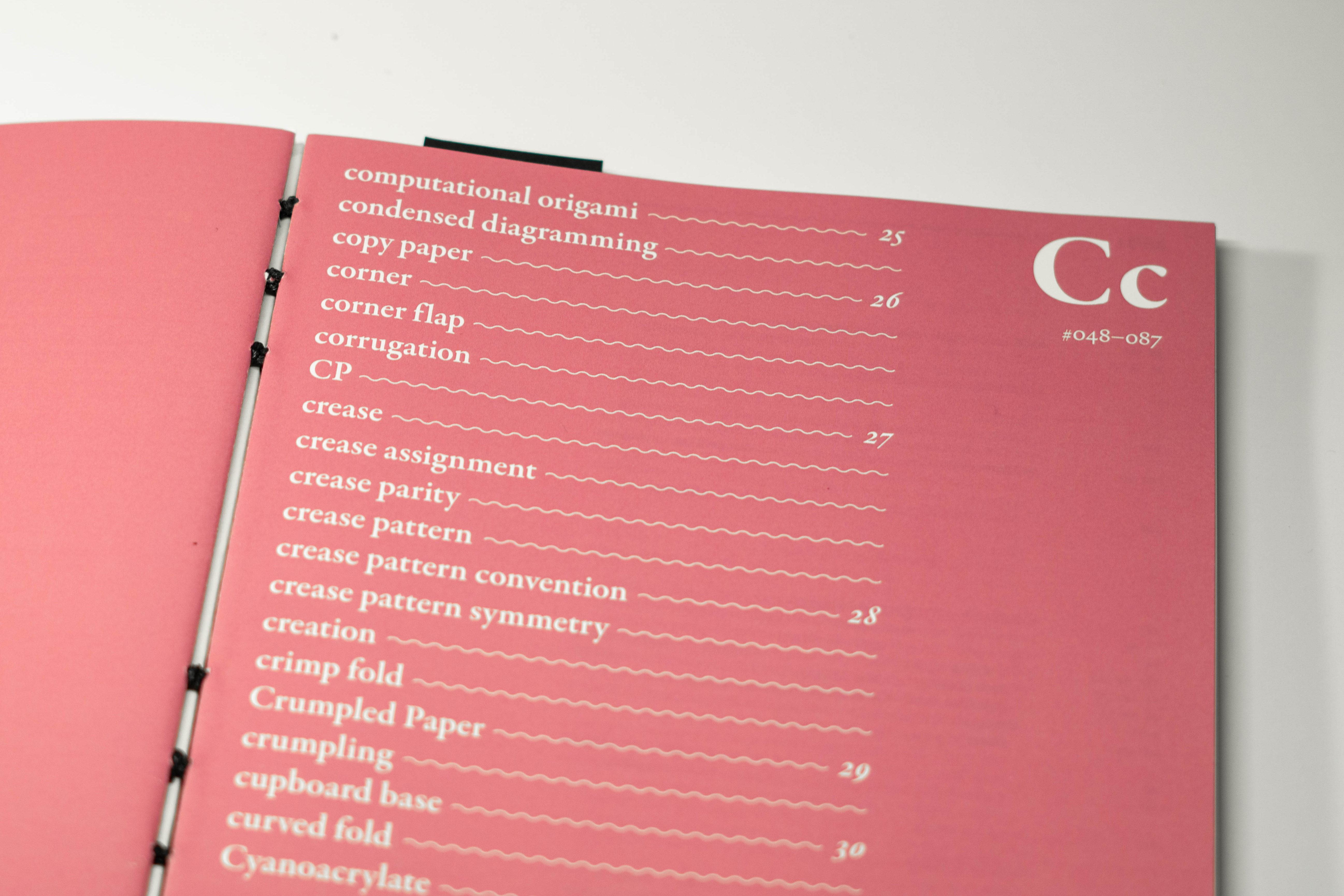 For my bachelor thesis, I developed GLOSS/ORI, an introductory glossary of origami terminology. This book project was designed to enhance understanding and communication within the origami community while making the art form more accessible to newcomers.