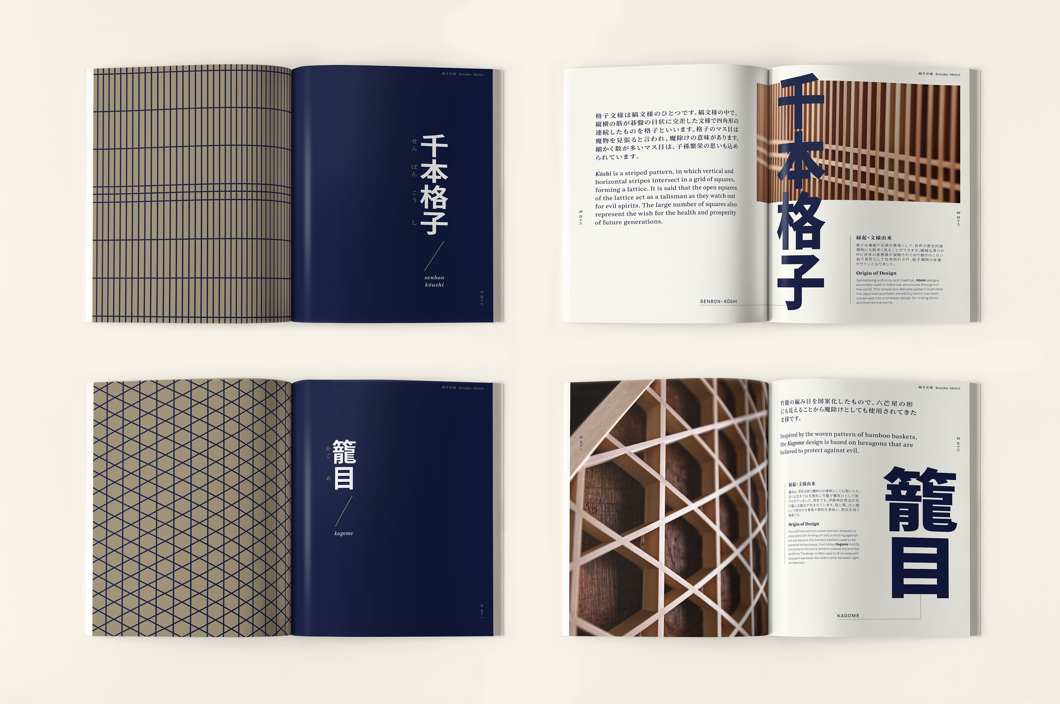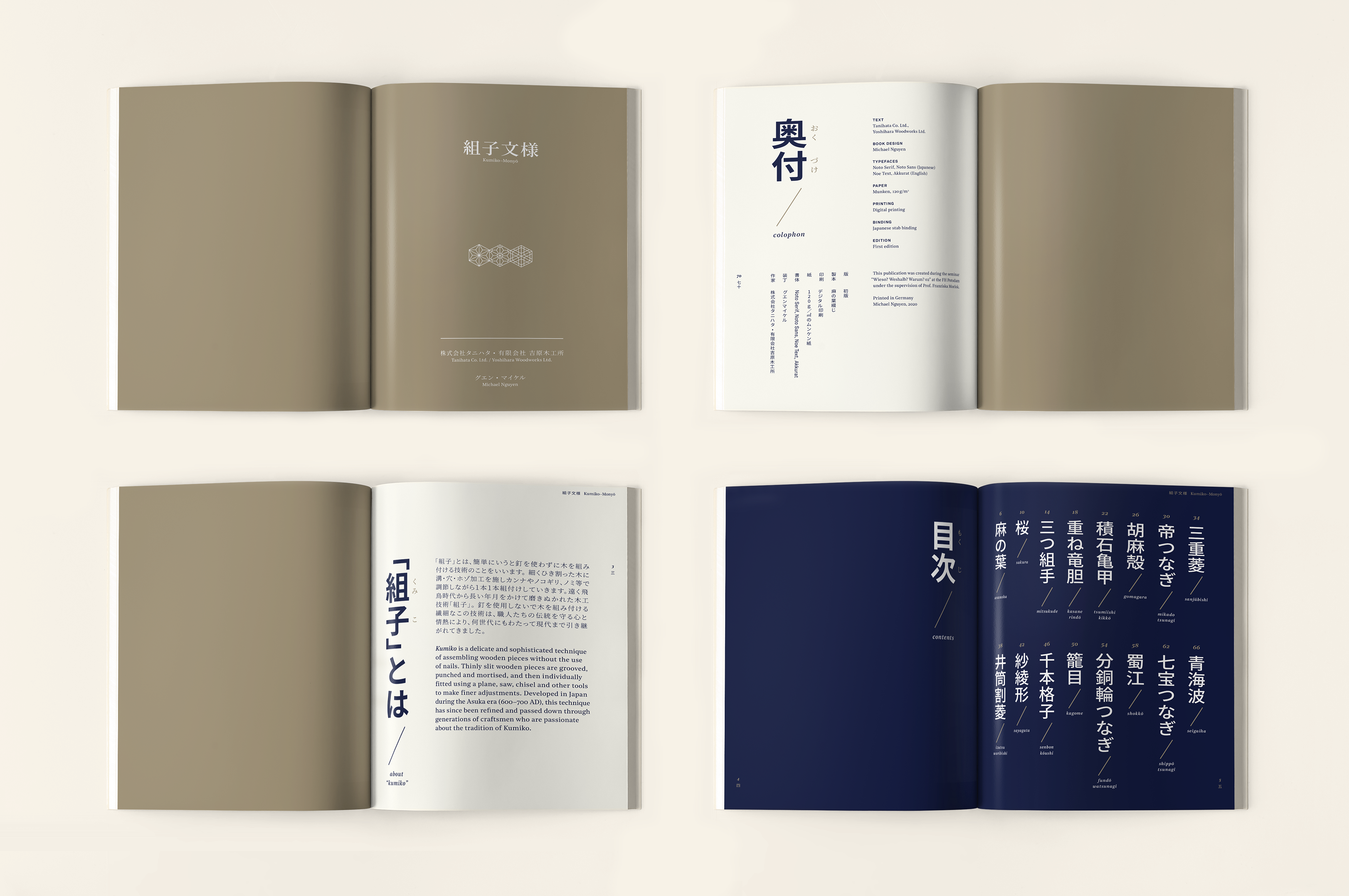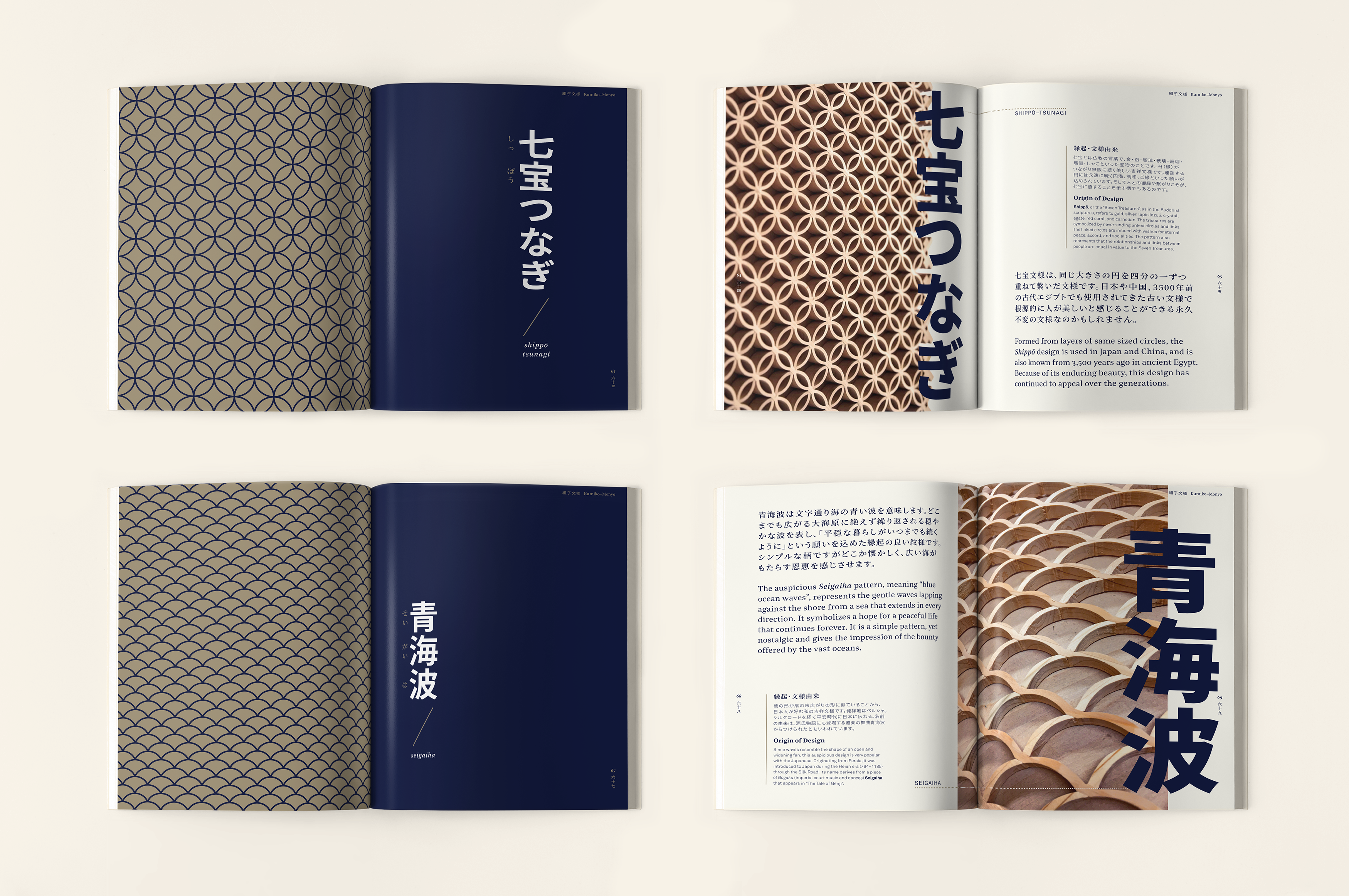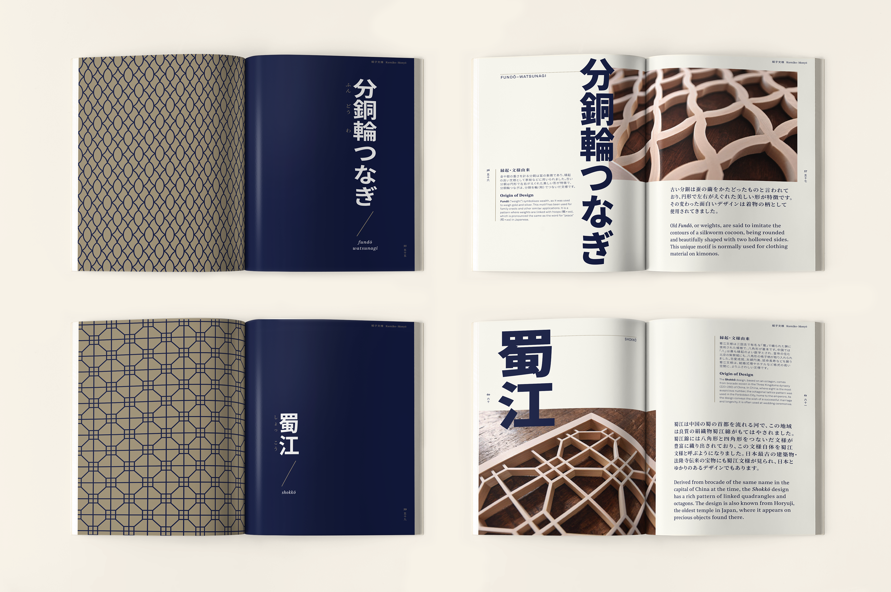For the editorial design, I researched the unique methods of setting and laying out Japanese text alongside English, carefully balancing both languages. I developed a modular layout system, applying it consistently throughout the book to echo the precision and structural harmony seen in Kumiko craftsmanship, where each wood element aligns seamlessly within the pattern.
