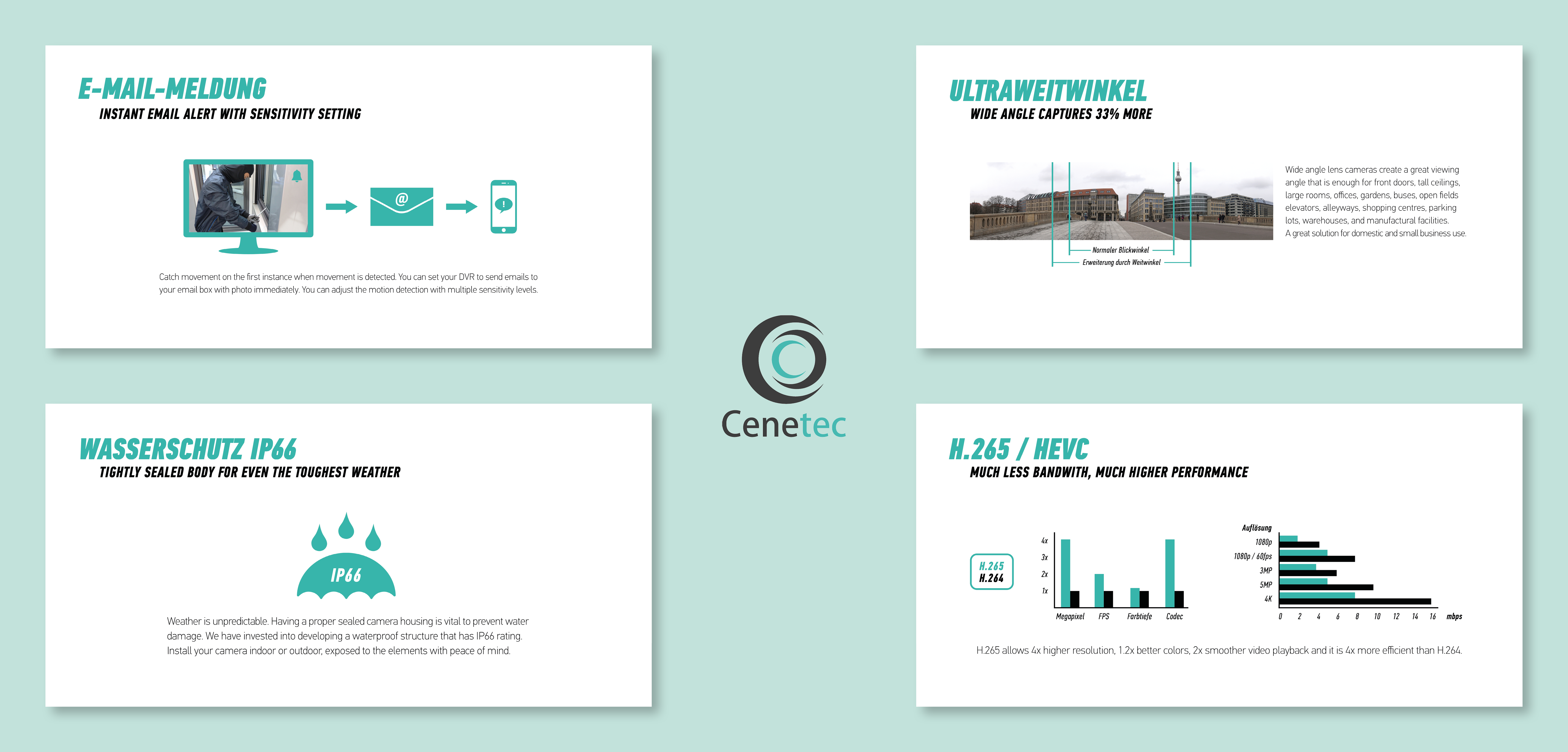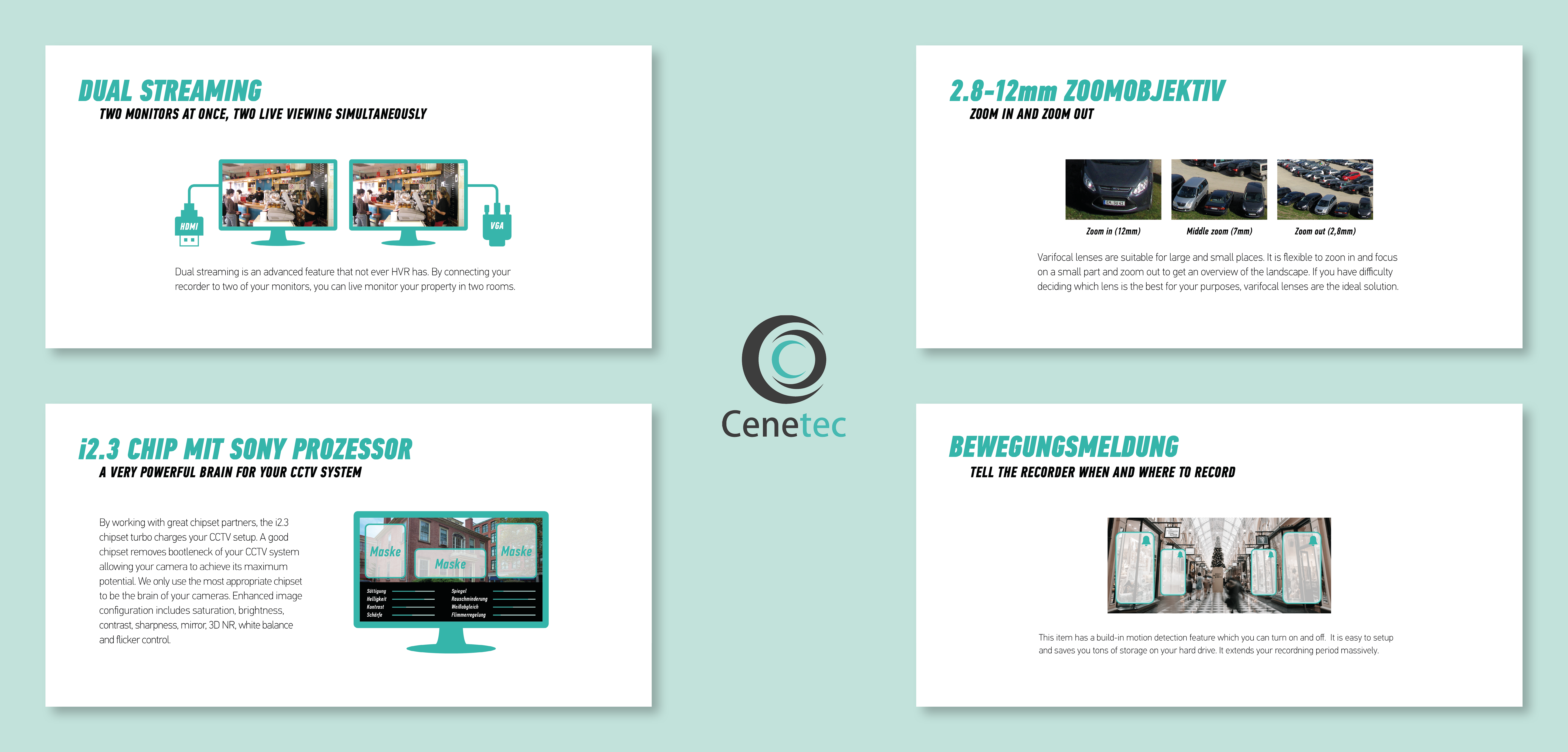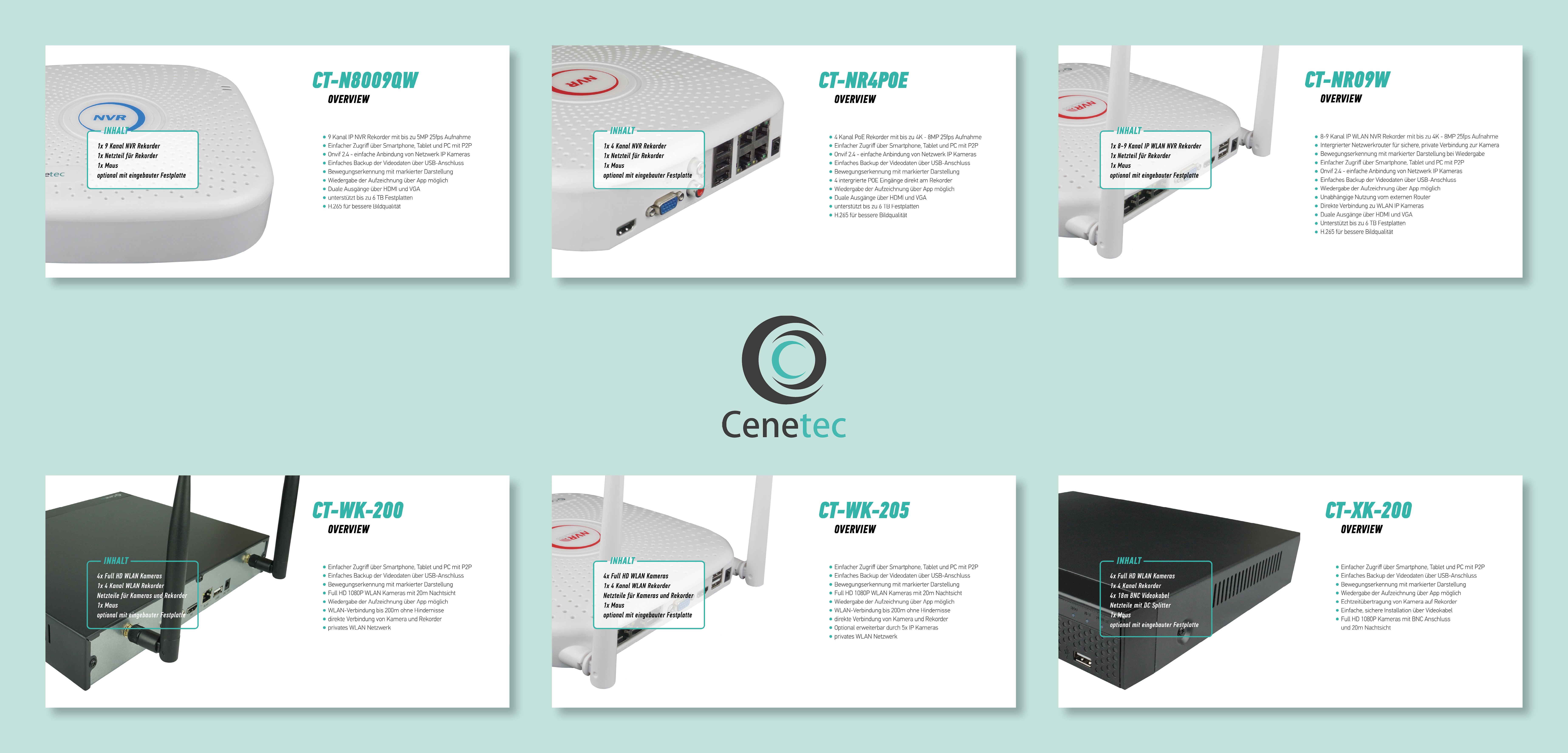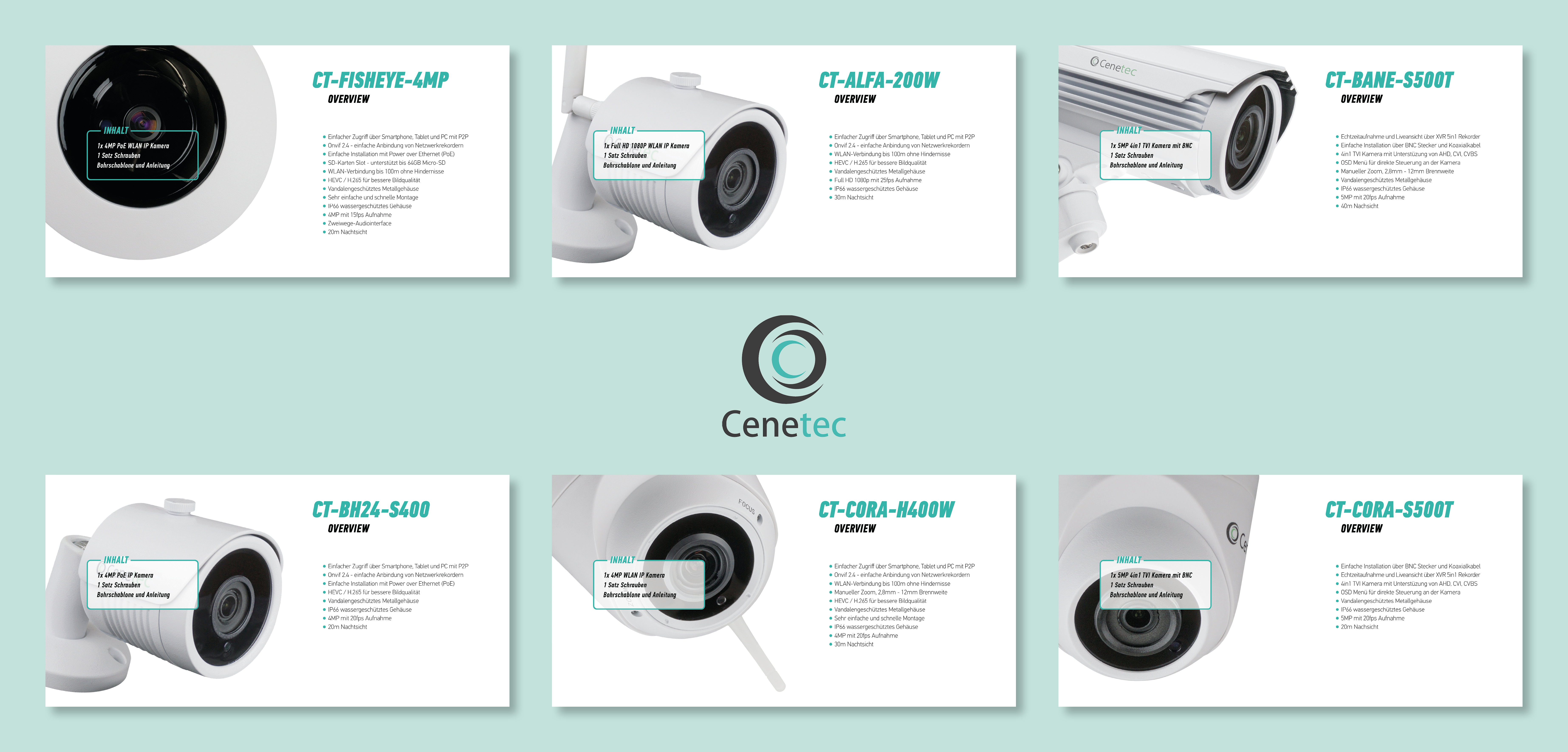 For Cenetec, I led the visual development of their entire surveillance and security product line as part of a comprehensive product campaign, crafting a bold and cohesive identity across their entire range of cameras, recorders, and alarm systems. The goal was to visually communicate reliability, innovation, and intuitive functionality in line with the brand’s promise.