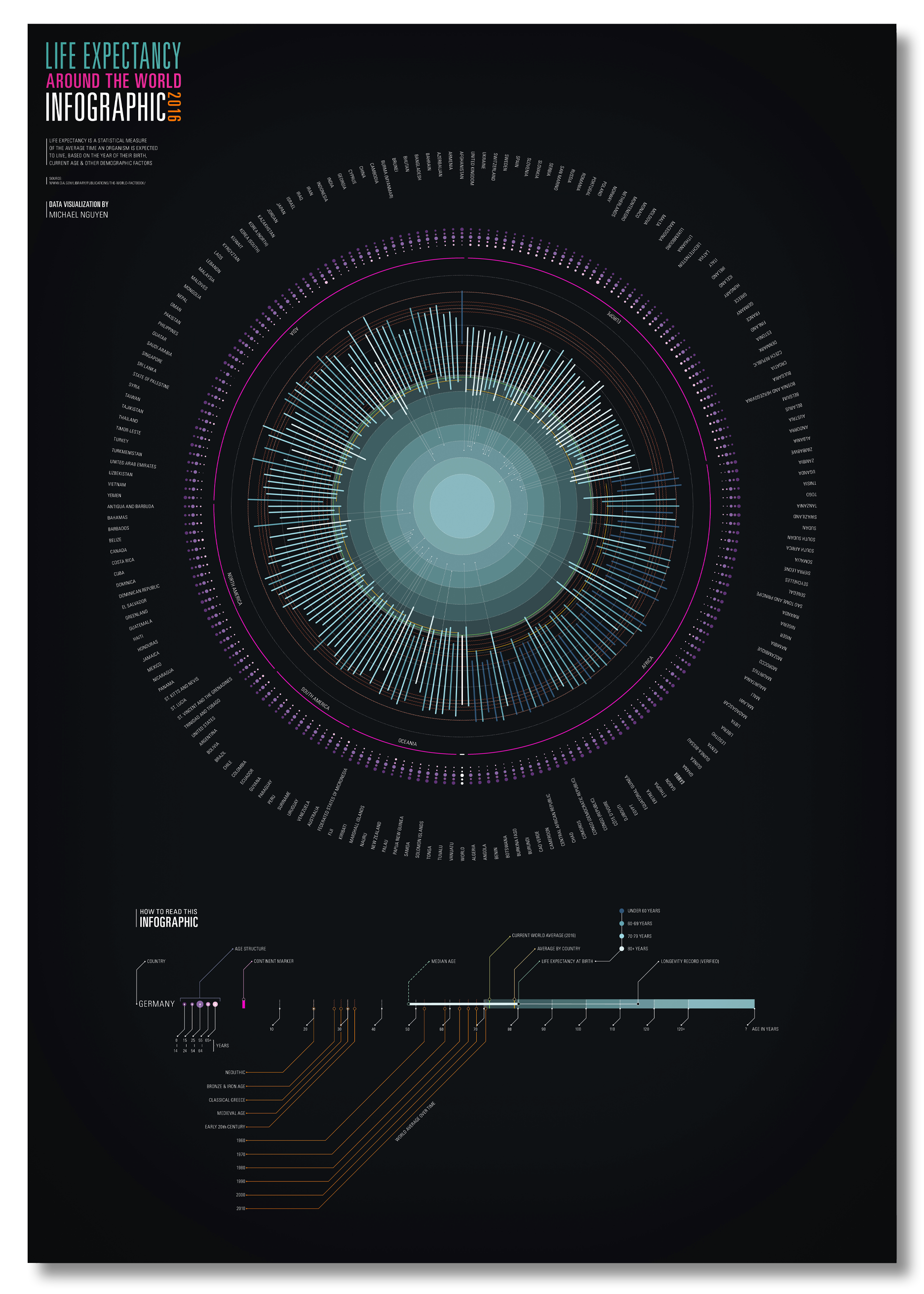 A data visualization project comparing life expectancies across countries, continents, age groups, and verified longevity records. Using 2016 data, the visualization highlights global trends and disparities in longevity.