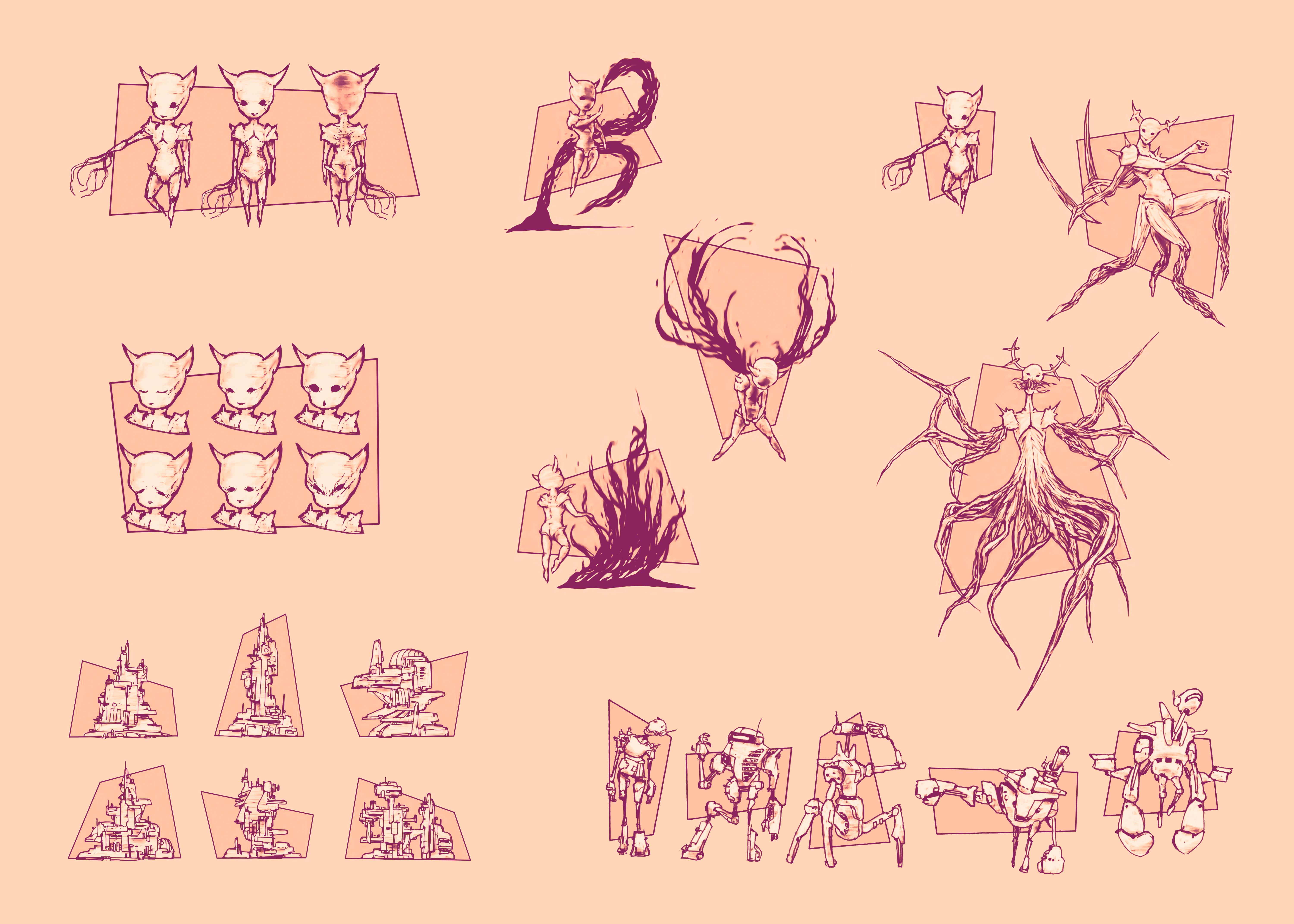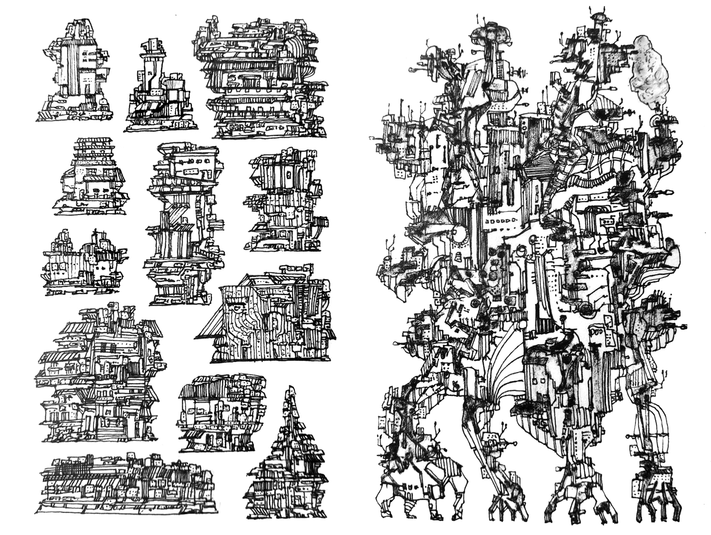 A selection of digital and traditional illustrations, including concept art (character design, environment, spaceships) animal drawings, paintings, urban sketches, figure drawing, landscape illustration, and abstract illustrations which were created from 2013 to 2020.